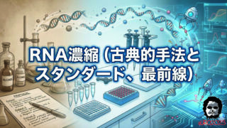研究初心者の医師・大学院生へ。RNA濃縮・精製の「原理」を理解していますか?古典的なアルコール沈殿(エタノール/イソプロパノール)の使い分けから、標準的なシリカカラム・磁気ビーズ、2025年最新のマイクロ流体技術までを網羅的に解説。実験の成功率を上げる品質管理のコツも紹介します。