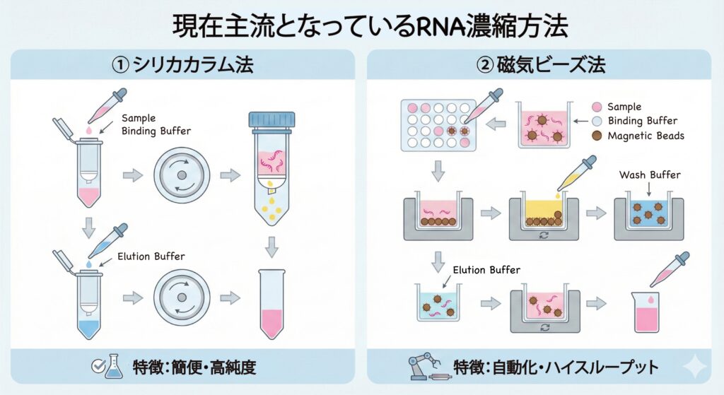 RNA濃縮技術は、目的によって使い分けるのが正解です。